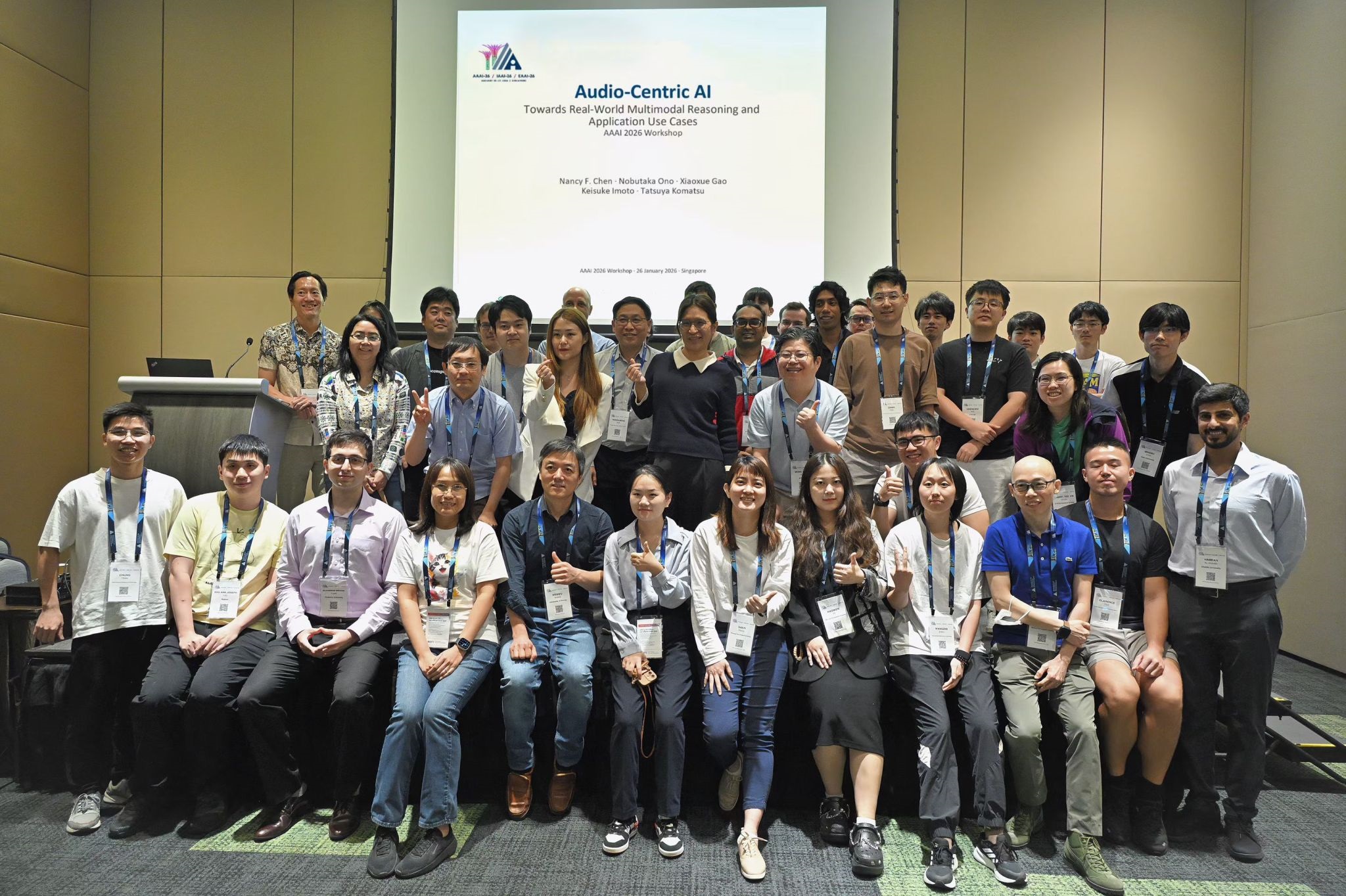 [01/2026] Invited Speaker, AAAI 2026 Workshop on Audio-Centric AI: Towards Real-World Multimodal Reasoning and Application Use Cases, held in Singapore, on 26th January 2026. [News] [Photo 1] [Photo 2] [Photo 3] [Photo 4] [ppt slides] [pdf slides]